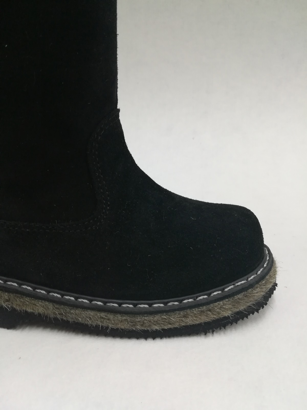 Модель подростковые унты  выполнена из натуральных материалов. Подкладка овчина. Верх унтов изготовлен из натуральной замши. Колодка обуви выполнена из мягкой  натуральной замши. Подошва войлок (100% шерсть) Войлок закрывает не скользящая, морозостойкая  микропористая резина. Очень подходит для регионов с холодным климатом.