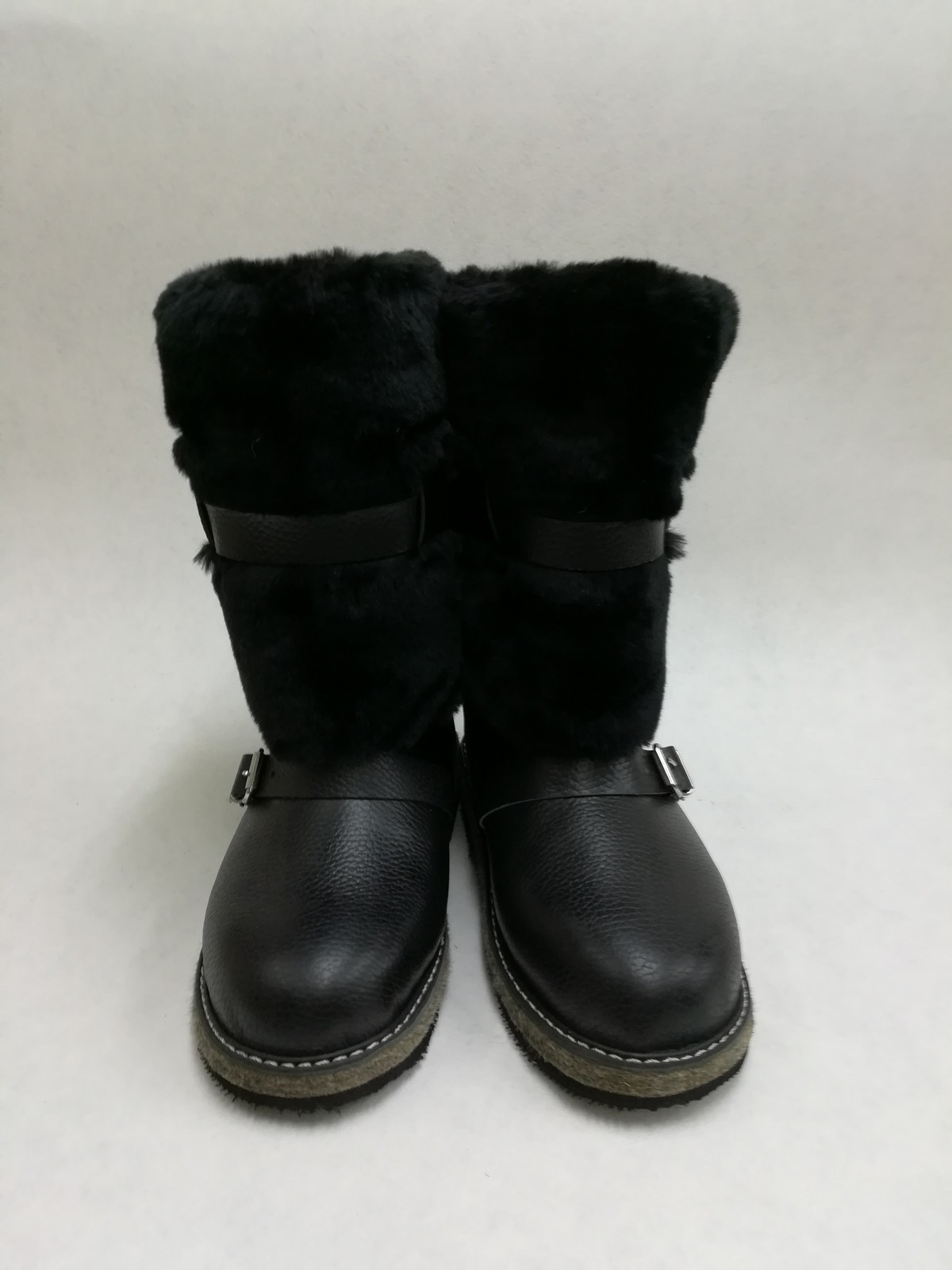 Модель унтов выполнена из натуральных материалов. Подкладка овчина. Верх унтов изготовлен из искусственного меха. Колодка обуви выполнена из кожи. Подошва войлочная (100%шерсть). Войлок закрывает не скользящая микропористая резина.Очень подходит для регионов с холодным климатом.
